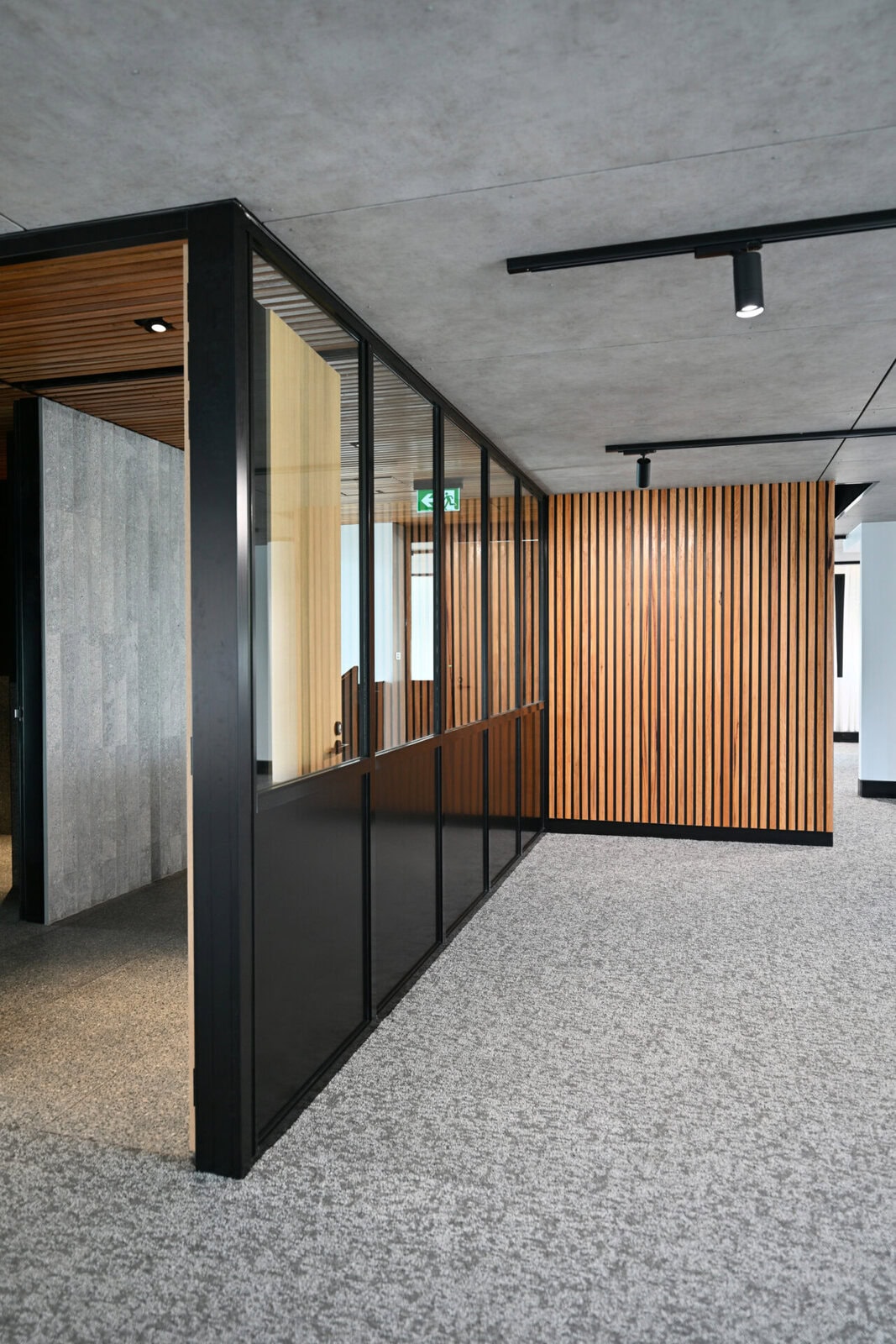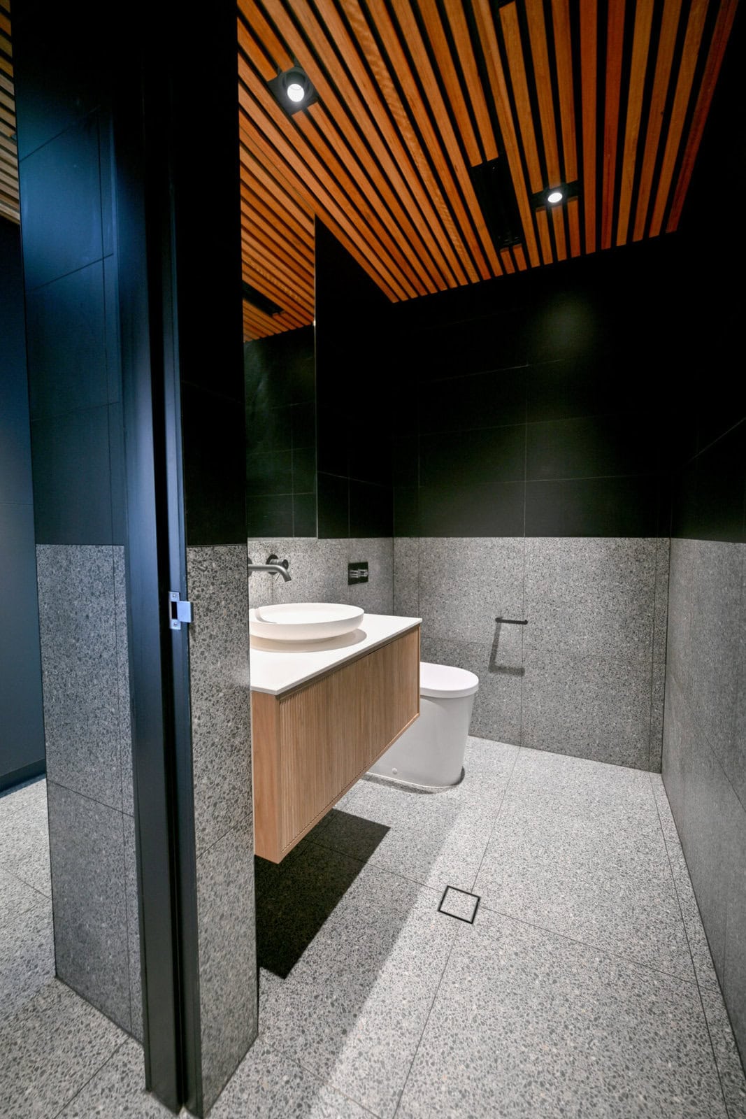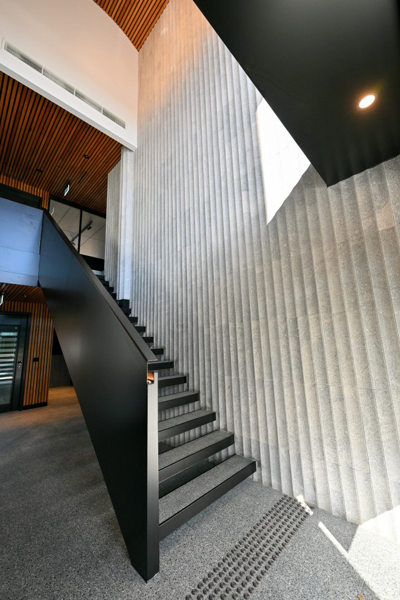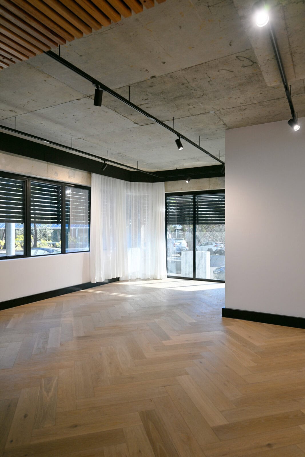 The design is a harmonious union of old and new, with original architectural elements reformed and elevated through the introduction of modern forms and materials. The façade delivers a strong street presence, with prominent entrance, full height windows, and dramatic black steel detailing.