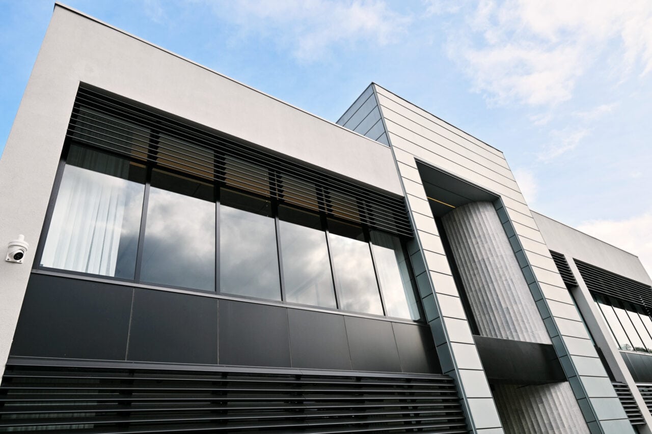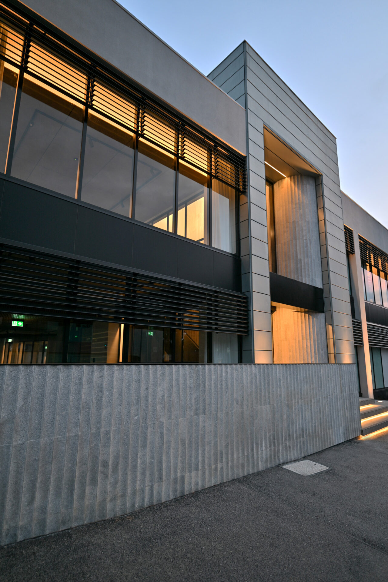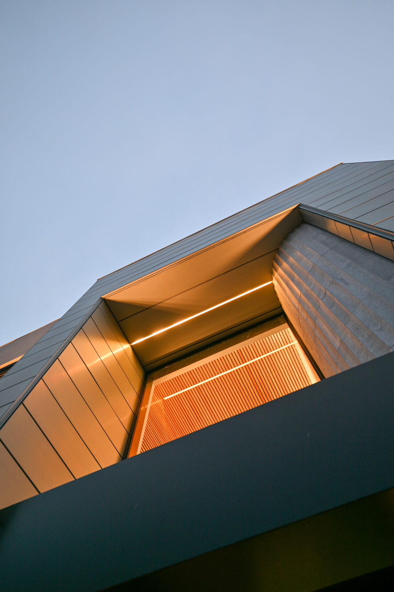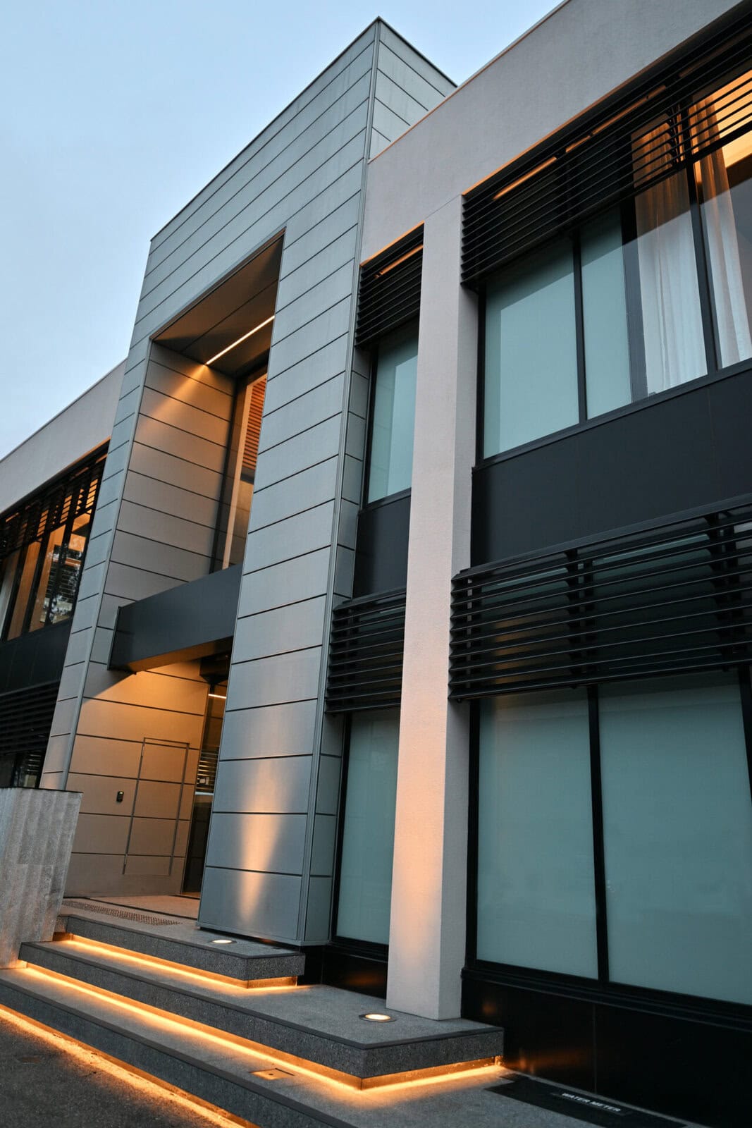The design is a harmonious union of old and new, with original architectural elements reformed and elevated through the introduction of modern forms and materials. The façade delivers a strong street presence, with prominent entrance, full height windows, and dramatic black steel detailing.